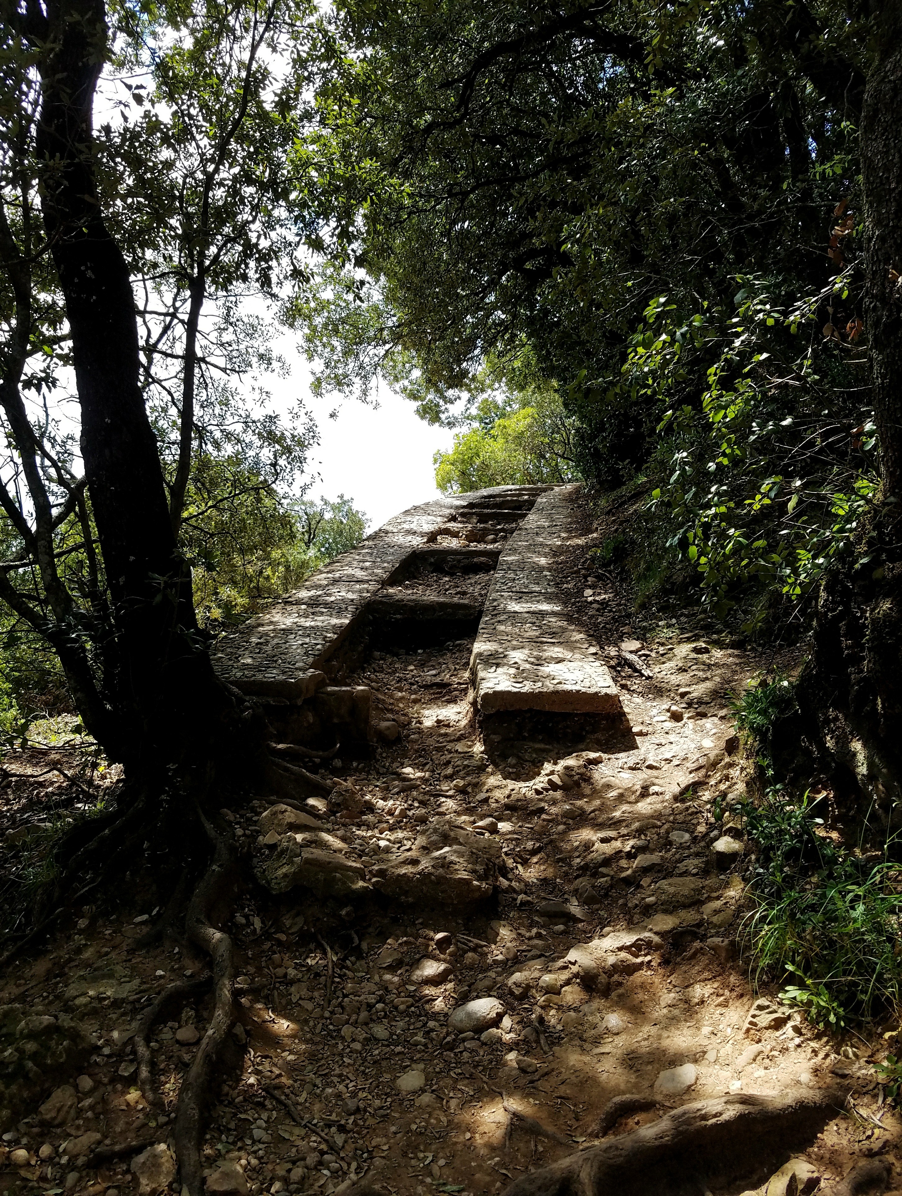 The funicular ride was quick, and landed me at a crossroads of hiking trails, each leading to a different point in the Montserrat mountains. I knew without a doubt I wanted to hike to the highest possible point—Sant Jeroni—and thankfully I learned from a blog (Probe Around the Globe) that the Sant Jeroni path is an IMMEDIATE right upon exiting the funicular station. Immediate, indeed! I think I would have missed it had I not read that blog post during my research phase. (I know. I know. Again with the research. But, see how vital it is??)